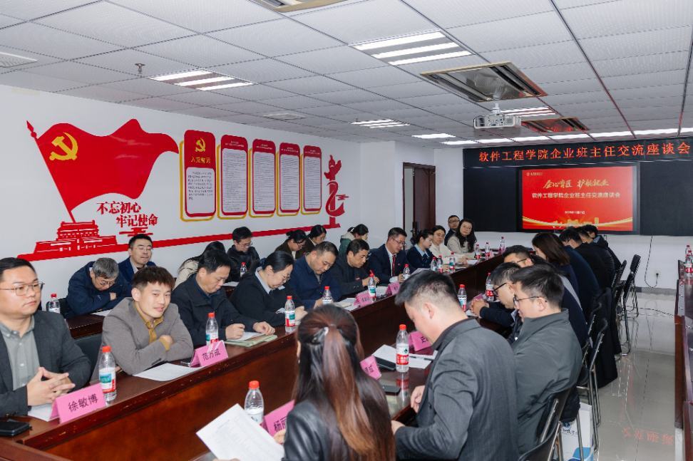 2025年11月26日,金陵科技学院企业班主任聘任大会在金陵科技学院科技楼报告厅举行。江苏龙8头号玩家国际科技(集团)股份有限公司唐佩、徐敏博、罗涛、孙文雅同志受聘金陵科技学院软件学院企业班主任,并随后在学院组织下,参观金陵科技学院科创空间,参加学院研讨会。